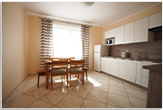 Każde piętro posiada 2 pokoje (2, 3, 4 osobowe), balkon, łazienkę i w pełni wyposażoną kuchnię (lodówka, zmywarka, indukcja, mikrofala, czajnik).